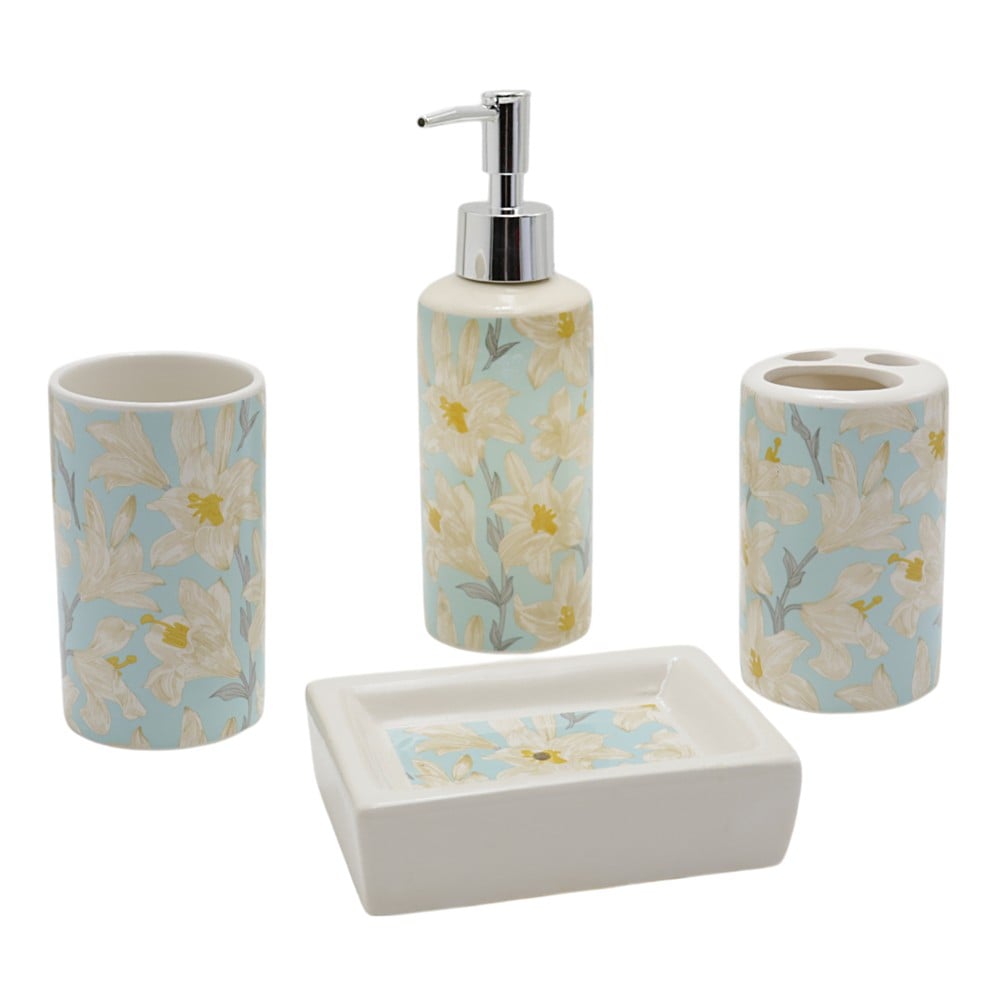 You're reviewing:Bathroom accessory, 4 pieces, Floris, ceramic, white, blue