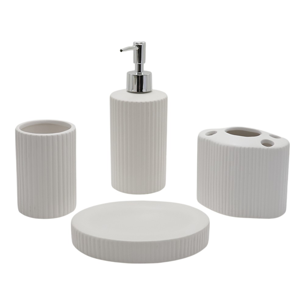 Bathroom accessory, 4 pieces, Stripes W, ceramic, white