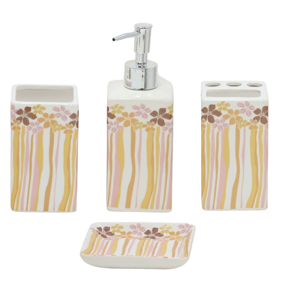 Bathroom accessory set, 4 pieces, ceramic, colorful