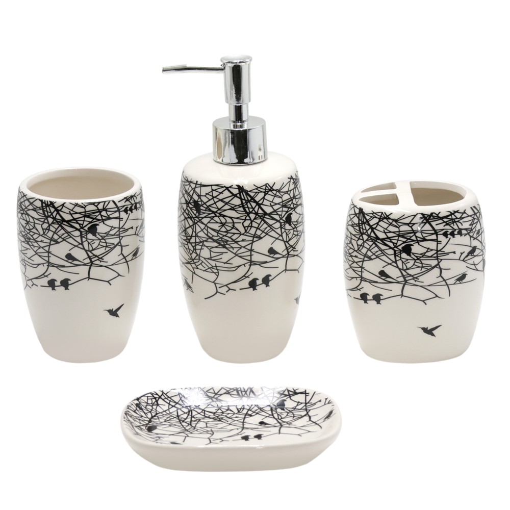 Bathroom accessory set, 4 pieces, ceramic, white/black