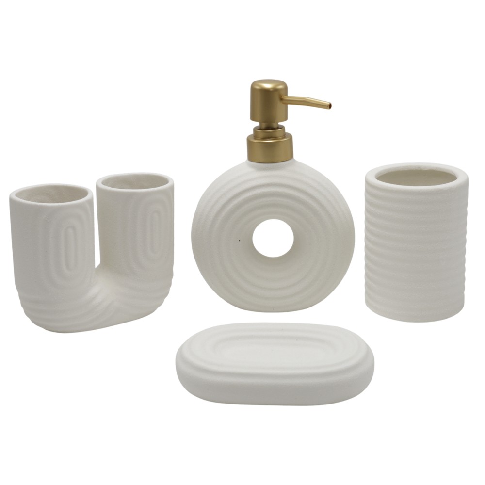 This white ceramic bathroom accessory set is the perfect solution for a clean, organized and classic-style bathroom. With a minimalist design and smooth surface, offering maximum functionality and elegance in every detail. The classic white color makes this set suitable for any environment, while the durable ceramic material guarantees moisture resistance and ease of maintenance. This set is an indispensable addition to improve the organization and appearance of your bathroom with a simple but refined touch.