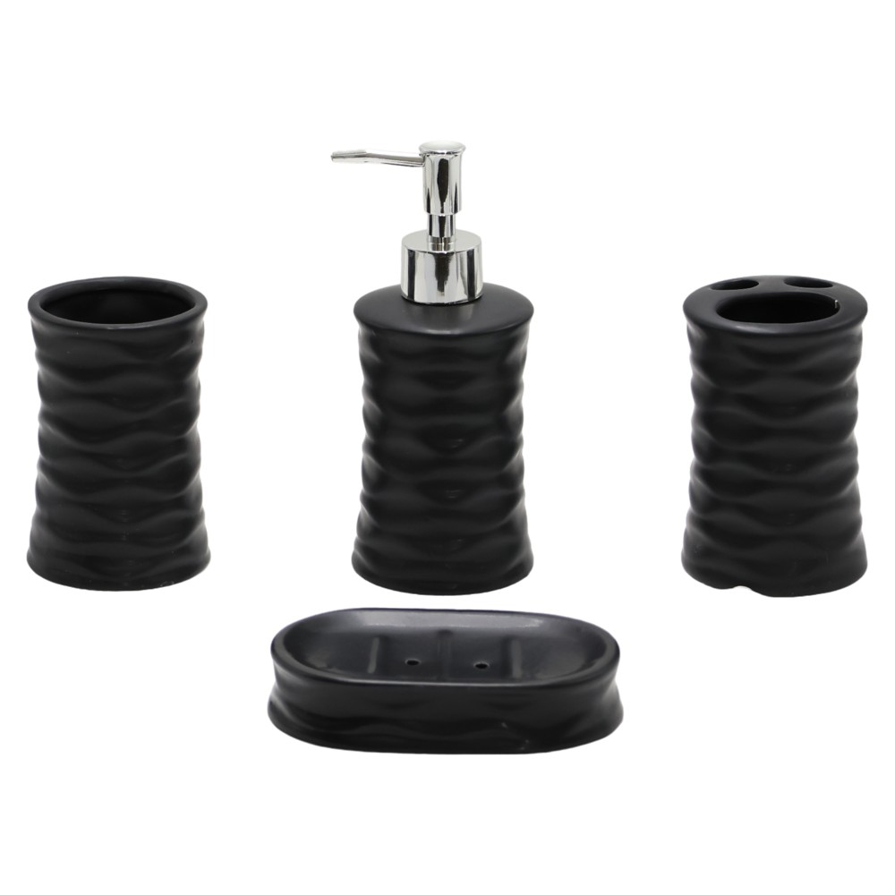 Bathroom Toilet accessory set, 4 pieces, ceramic, black
