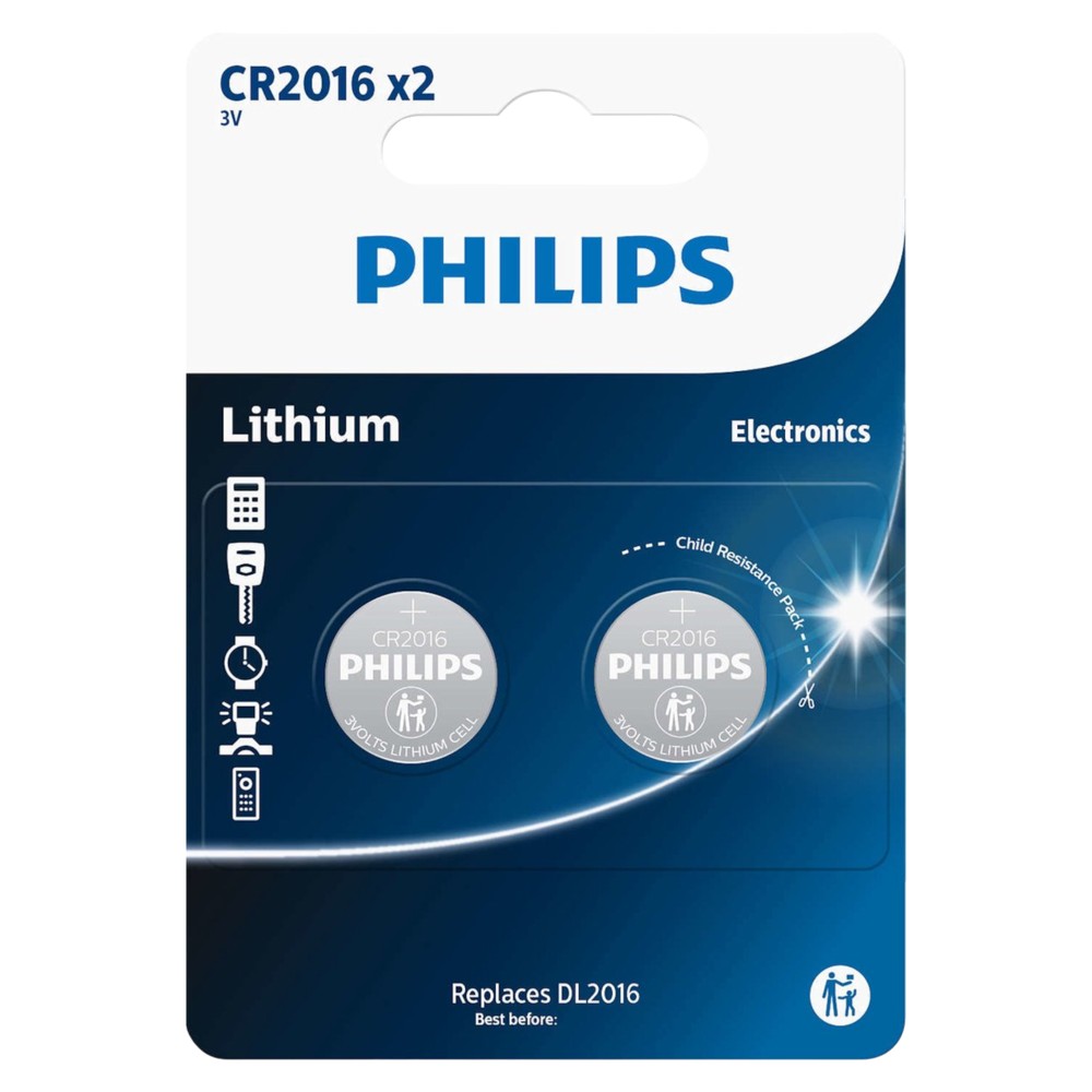 Philips CR2016 Button Cell Batterie Provides long lasting power to everyday small electronic devices. Excellent technology is used during production to ensure reliable and long-lasting performance. Lithium, silver and alkaline technologies give small devices reliable maximum power and maximum life.