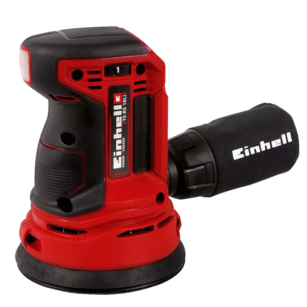 The Einhell cordless rotating sander TE-RS 18 Li - Solo provides the user with cordless and independent flexibility for work in the home, garage and workshed. The cordless rotating sander is a member of the Power X-Change series. The batteries with the high-grade lithium-ion cells can be used for all members of the Power X-Change family. Be it compact or soft materials: thanks to the speed electronics the tool can be adjusted to the particular material and application when performing work on the surfaces of wood, metal or stone-type structures. A high-precision finish and a high sanding performance can therefore be achieved thanks to the eccentric concept. For safe and comfortable operation there is a soft grip. For holding the abrasive paper securely there is a hook and loop fastening, which also enables the the paper to be exchanged with just a twist of the hand. An integrated dust extractor is included to keep the work area clean and free of dust, and an external dust extractor can also be connected. Complete with one piece of abrasive paper (P80). The battery and charger are available separately.