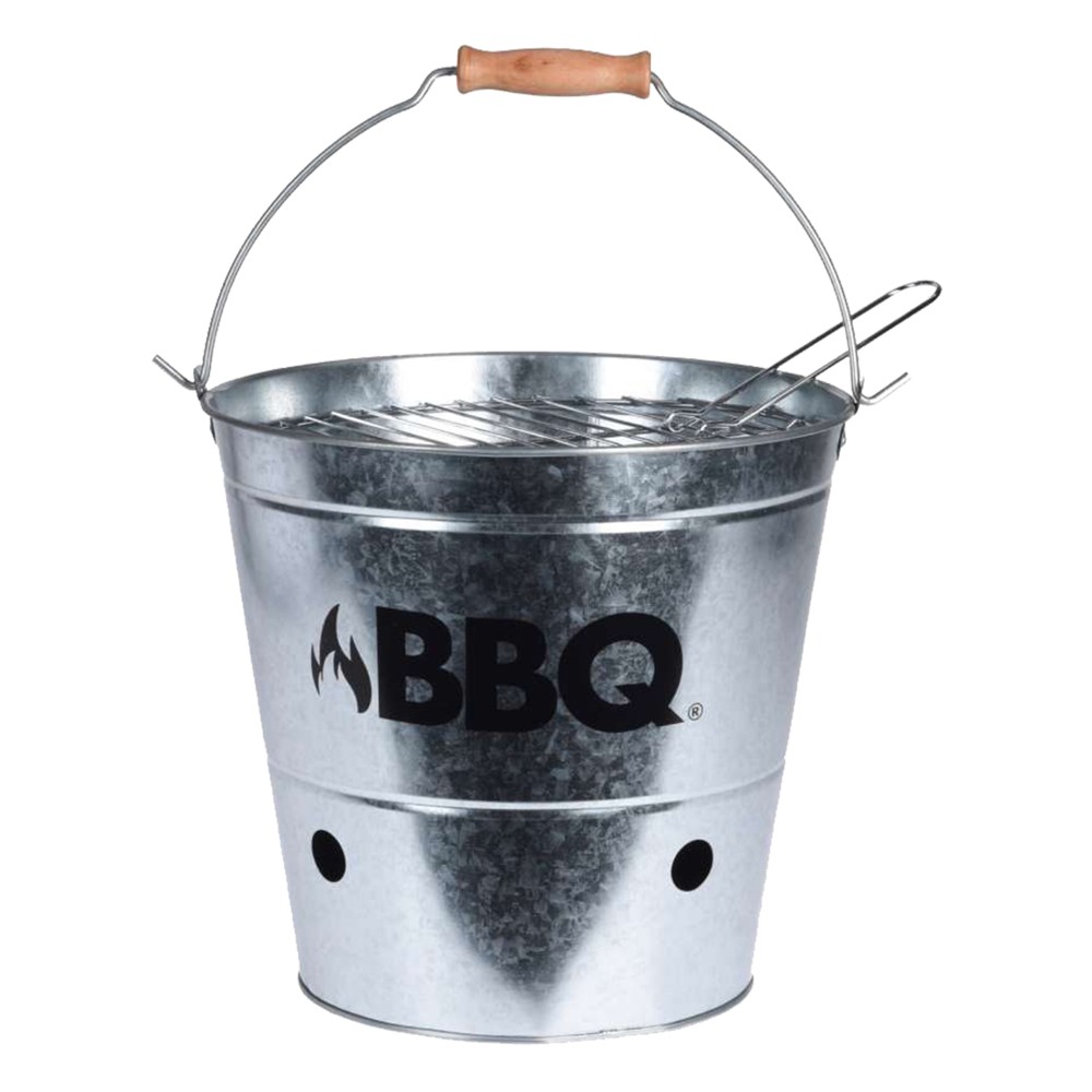 Charcoal barbecue, in a bucket made of zinc material, stainless steel of the grill equipped with a wooden handle for its transport, with ventilation holes in the grill bucket that ensure good air circulation. As fuel, we recommend briquettes or charcoal. Our prep tip: wait until the fuel has formed an ash layer before you start grilling.