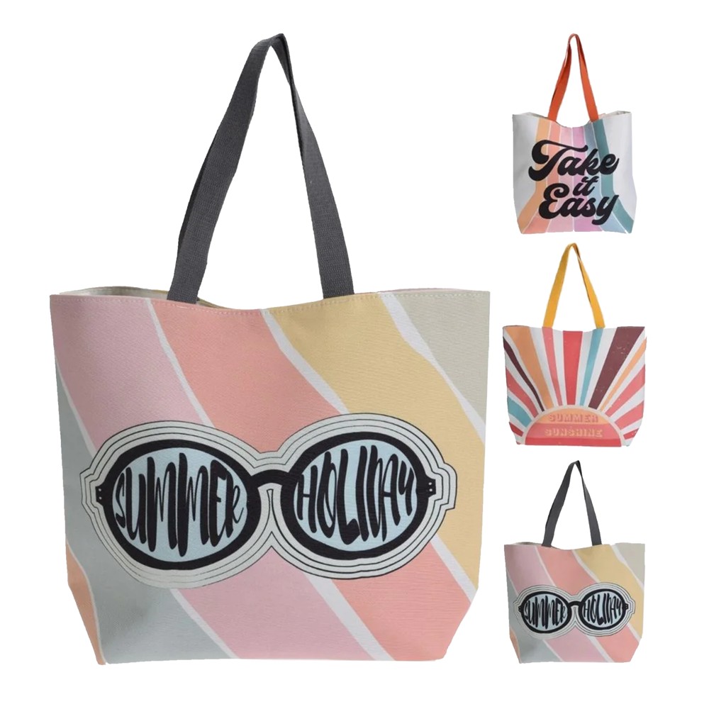 Practical beach bag. Quality polyester material and ideal size of 38x50 cm. You can put in your beach products such as different creams, water thermoses, airtight food bowls and others. 3 different modern designs for you to choose from.