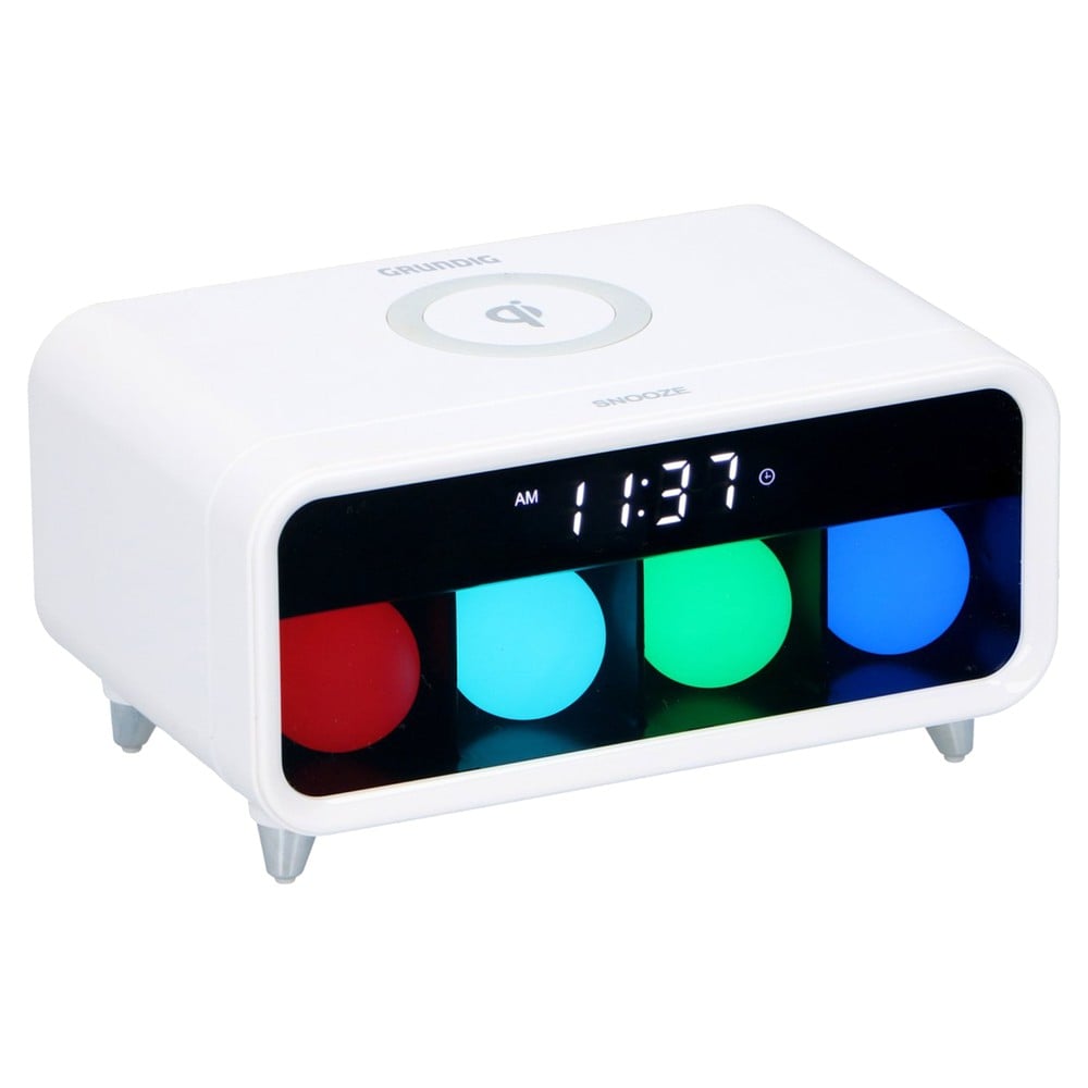 This is a great device to have next to your bed. You can charge your cell phone wirelessly and thus have an alarm clock and a very nice bedside lamp. In short, 3-in-1! Do you like to take a nap after the alarm goes off? Just set the alarm clock snooze function. On top of the device is an anti-slip mat where you can wirelessly charge your smartphone or tablet if it supports the IQ standard. So you no longer need a separate charging cable. The warning light turns red while charging and changes to green when the battery is full again. The lamps work with 3 different light settings. They can burn continuously, they can change in brightness, and there is a mode where each light changes color slowly.