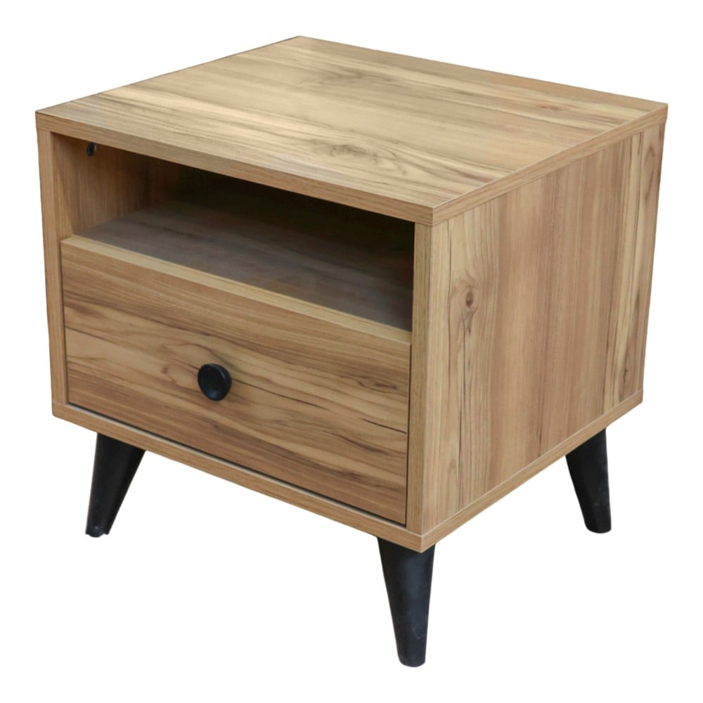 The “Eti” bedside table is an elegant and practical piece of furniture, made of quality melamine and comes in a combination of brown and black color. Its modern design and clean lines make it suitable for any bedroom or utility space, offering style and functionality at the same time. The dark colors give it a sense of sophistication, while the material ensures durability and longevity.