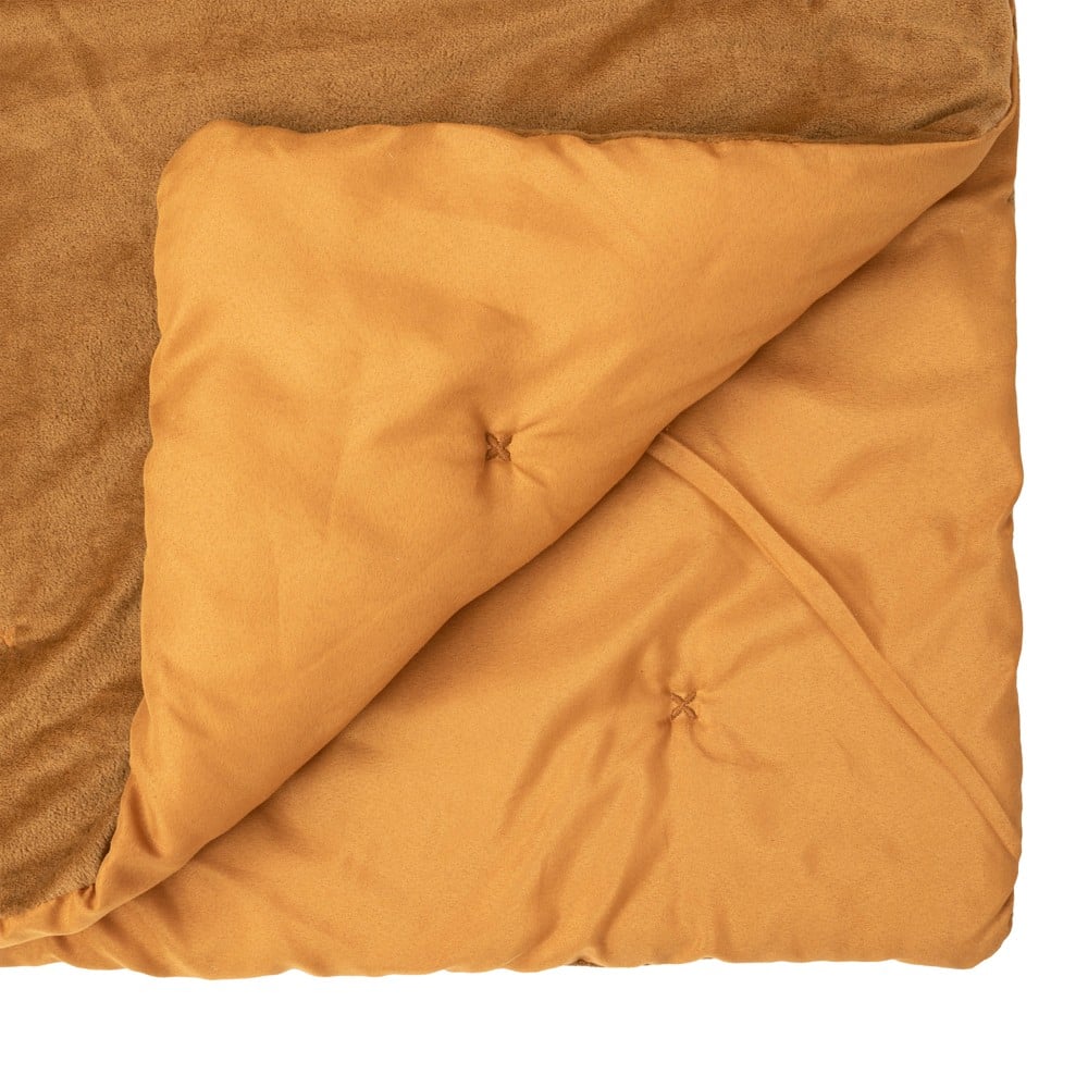 Double bed cover, in camel color, made of soft-to-touch material, with velvet texture. The bed cover has polyester filling, which gives it hypoallergenic properties, that help in maintaining the freshness and clean feeling for a longer time. The minimalistic two-tone design makes this bedspread an original choice for your bedrooms, which can go well with other decorative objects in your interiors. The bedspread can be washed easily in a washing machine and is resistant to stains.