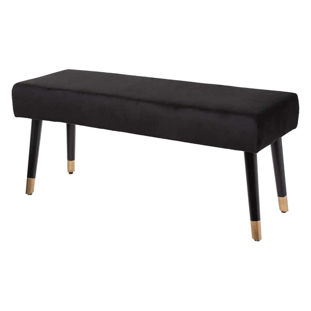 Bench, Salome, wooden frame, textile upholstery, black/golden, 100 x 35 x H 45 cm