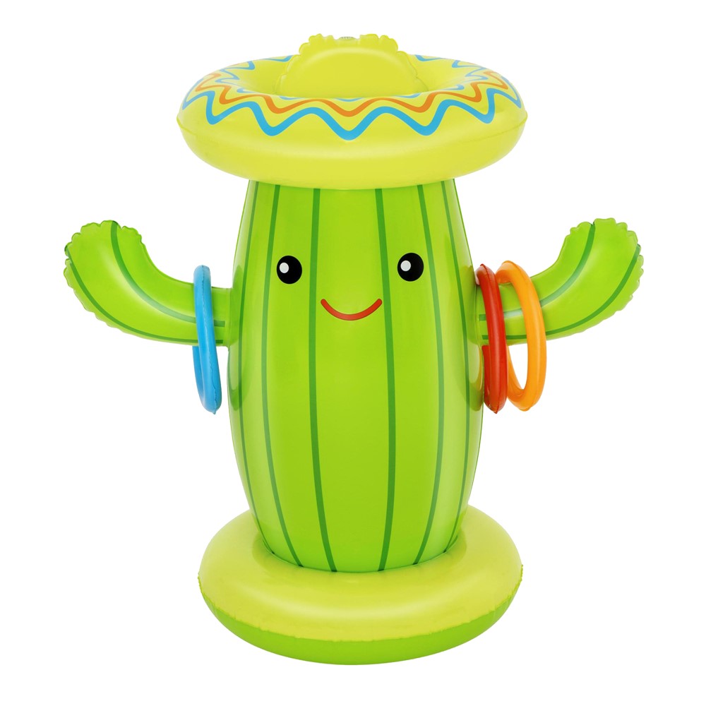 Spend your summer days in the sun with this cute giant cactus! The Bestway® Sweet & Spiky Cacti Water Sprinkler will keep kids entertained for hours. The built-in sprinkler sprays water from the top of the cactus, allowing kids to run, jump and play in the spray all day long. For an extra portion of fun, the sprinkler also comes with a throwing game with rings. While playing in the water, the children can use the throwing game to throw rings onto the cactus arms and train their coordination skills. Your imagination is also encouraged! The built-in sprinkler is easy to connect to a garden hose and is quick and easy to set up. The base to be filled with water gives the sprinkler stability when playing