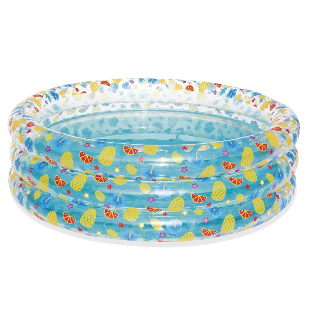 The Bestway® Tropical Paddling Pool is an inflatable children's pool designed for families who can now enjoy the tropics all year round. The portable pool features fruits, flowers and other motifs from tropical paradises, making you feel like you're on vacation. Get the Bestway Tropical paddling pool and create your own water paradise this summer.