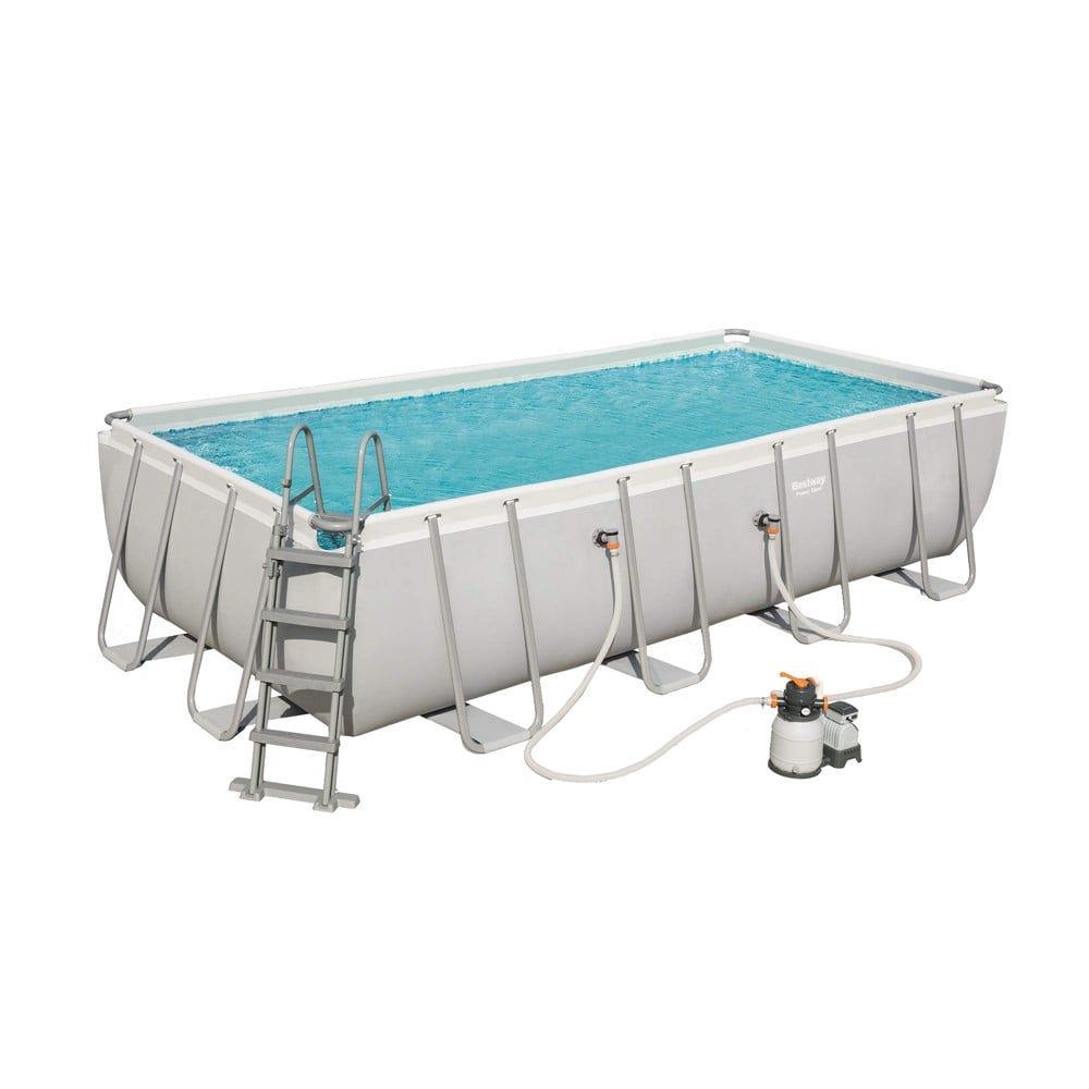 Removable above-ground Power Steel™ pool, in a rectangular shape, made of synthetic Tritech™ material, composed by a triplate polyvinyl chloride (PVC) layer, covered with 2 layers of vinyl PVC and reinforced with a nylon and polyester mesh layer between the inner layers, which makes it more durable and puncture-resistant. The tubular support structure is equipped with a Seal & Lock™ assembling system, for a solid and secure pipe connection, with a constituent material made of galvanized steel, which has anti-rust properties and it is resistant against the corrosion caused as a result of the chemical and electro-chemical agents' action on the metallic surface. The pool has dimensions of 524/549x250/274x122 cm, a water capacity of 14812 liters, and support structure dimensions of 524/594x250/314x122 cm. It can be assembled and dismantled easily in only 30 minutes. The set also contains: