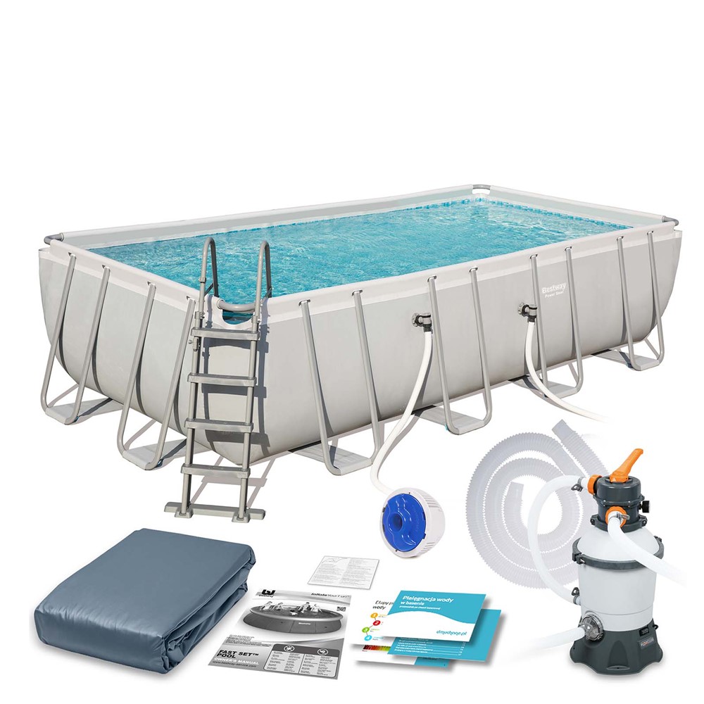 Bestway pool with sand filter pump, PVC / metal, gray, 4.88 mt x 2.44 mt x depth 1.22 mt