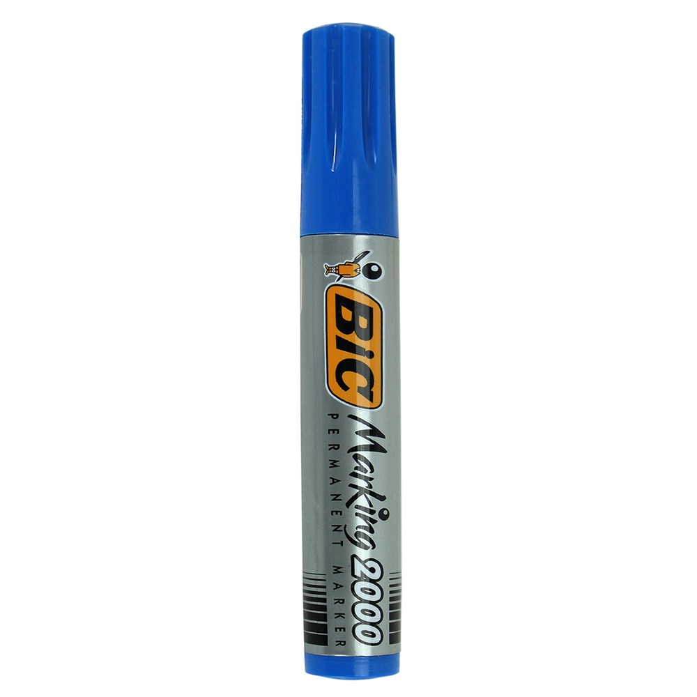 BIC Permanent Markers Marking 2000, round tip, blue line width: 1.7 mm, plastic housing, cap and end piece in writing color, smudge-proof and water-resistant, quick-drying, low odor.