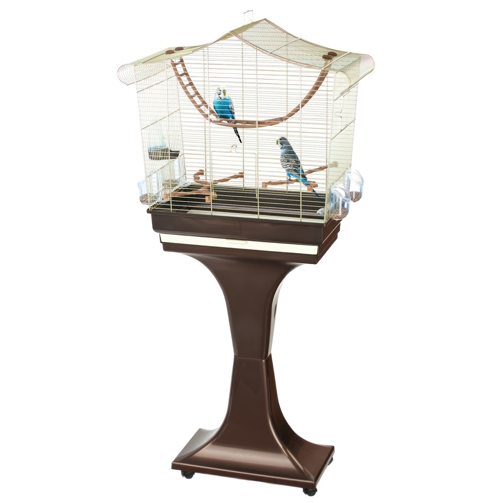 Bird cage, Imac, Sofia, cage H63 x 33 x 61 cm, support 133 cm, color brown with gold