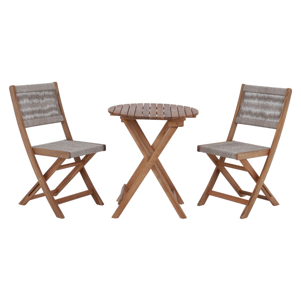 You're reviewing:Bistro set, 2 chairs + 1 round table, acacia wood, brown / black, 42.5x38xH80 cm / Dia.60xH70 cm