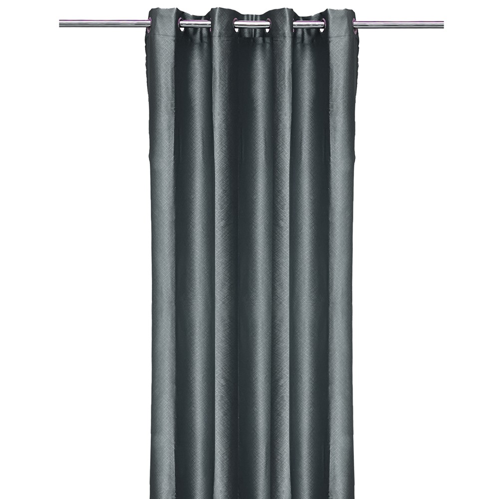 Blackout curtain with rings, 100% polyester, grey, 140x260 cm
