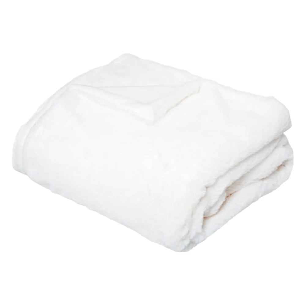 Blanket in white color, made of 100% synthetic polyester. It can be best used as a cover while sleeping or as a decorative cover, to be placed over your sofas, armchairs or beds. The material is soft to the touch and has a light weight, which makes the product practical and pleasant to use. The monochrome design makes this blanket an interesting choice for your interiors.