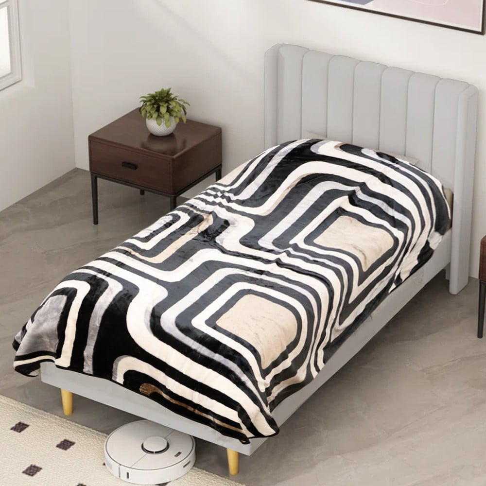 Blanket, Raschel, single, polyester, black/brown, 160x220 cm