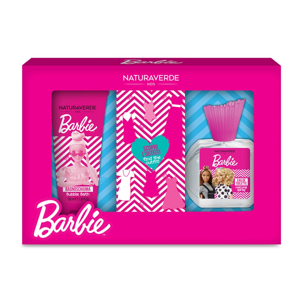 Kids' body care set, which contains a body shampoo, a bottle of floral perfume and surprise accessories Barbie Dress. The shampoo has a dermatologically tested composition, is gentle on the skin and has moisturizing and nourishing effect. This set can be used as a gift for children.