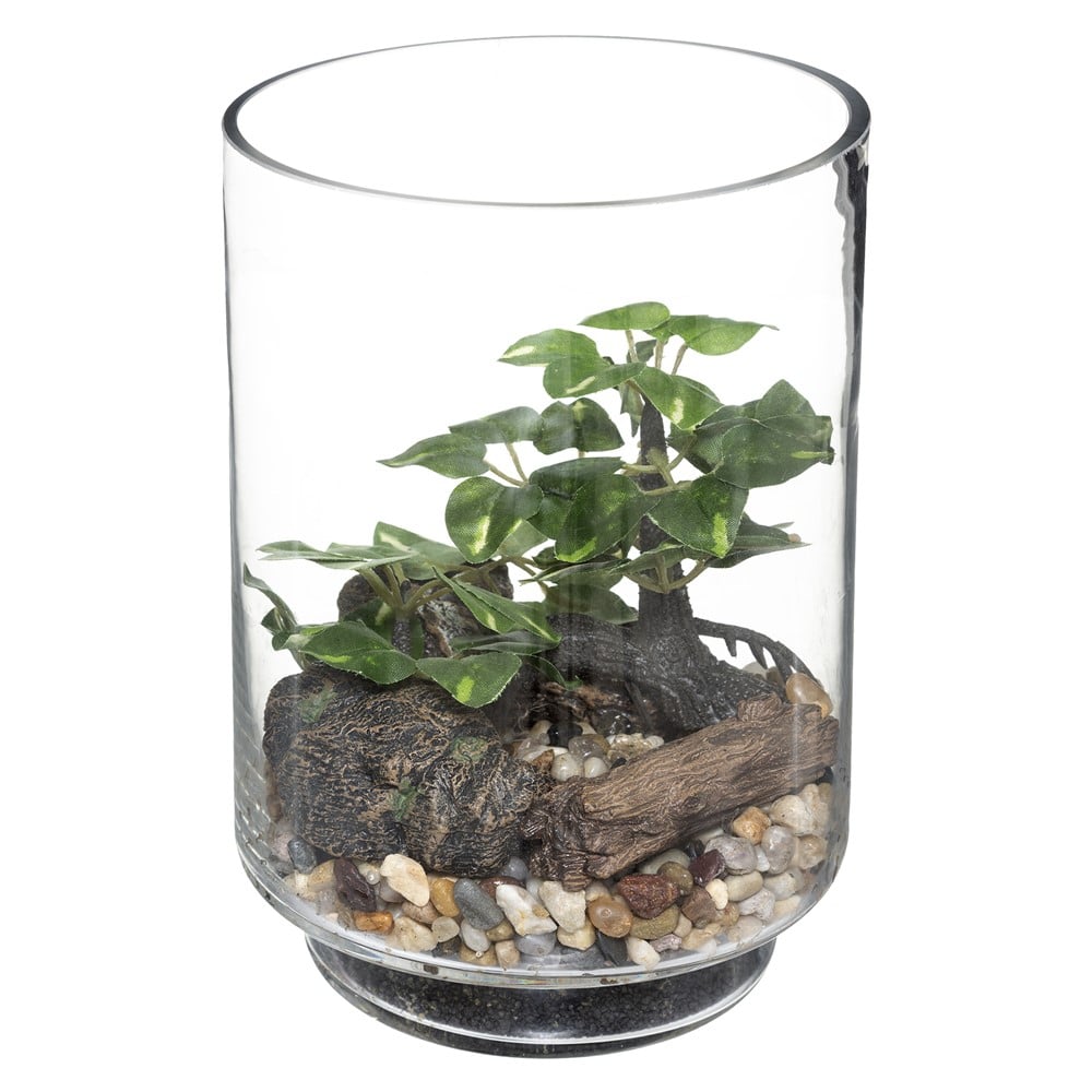 Bonsai, in vase, glass/stone/pp, clear, Ø12.8 xH19 cm