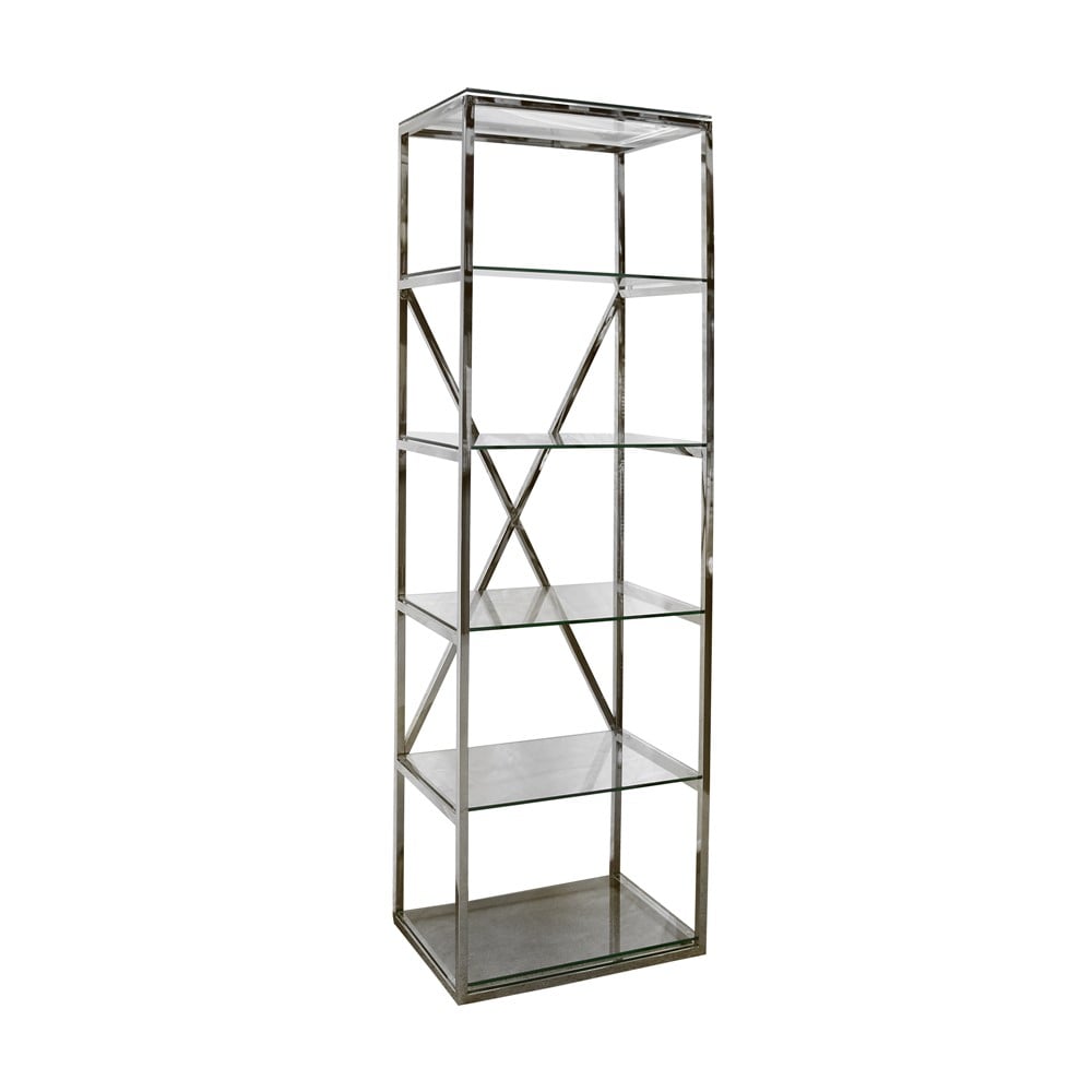 Book shelf, stainless steel structure (silver), tempered glass 8 mm, clear, 60x40xH180 cm