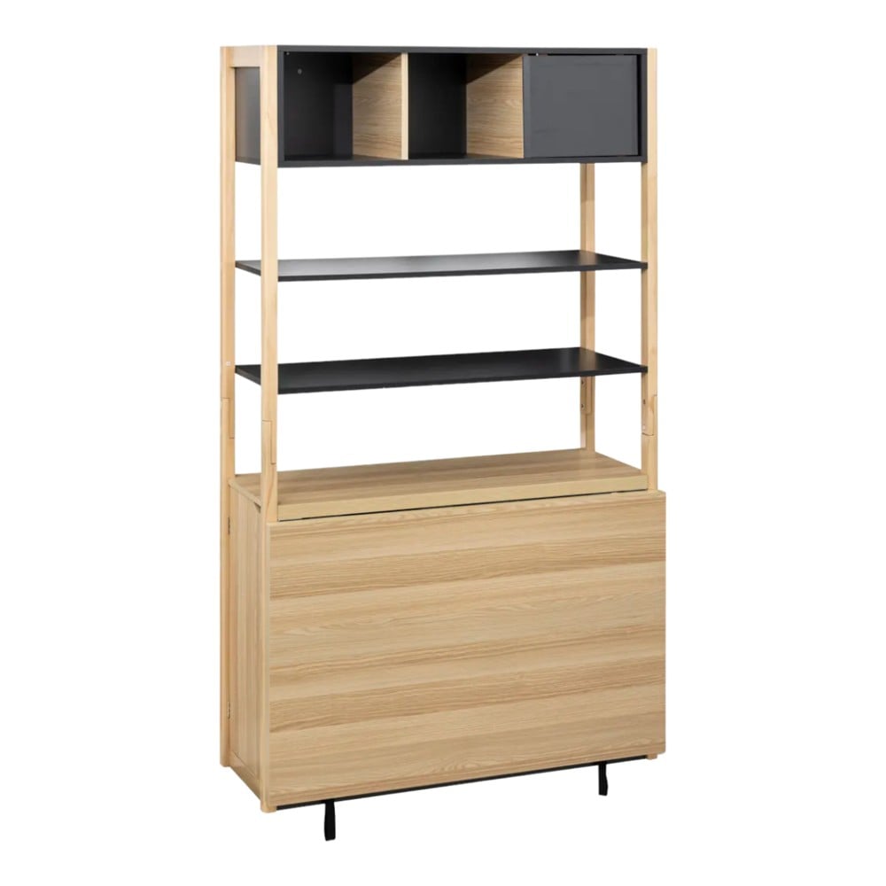 The Extensio bookcase with desk is a great piece of furniture for your reading area or to add a touch of elegance and organization to your room. One of the main features of this shelf is the attached table, which adds a special element of functionality. With a brown/black color combination, this shelf gives a modern and elegant look. With dimensions of 100x38xH180 cm, this shelf offers enough space to hold a large collection of books or other decorative objects.