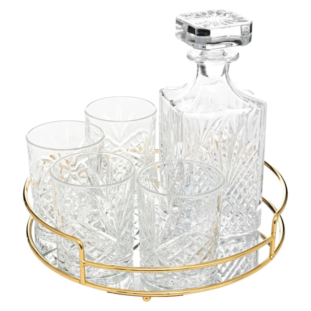 You're reviewing:Bottle of whiskey with 6 glasses, glass, transparent, 22.5 x 9 x H. 9 cm