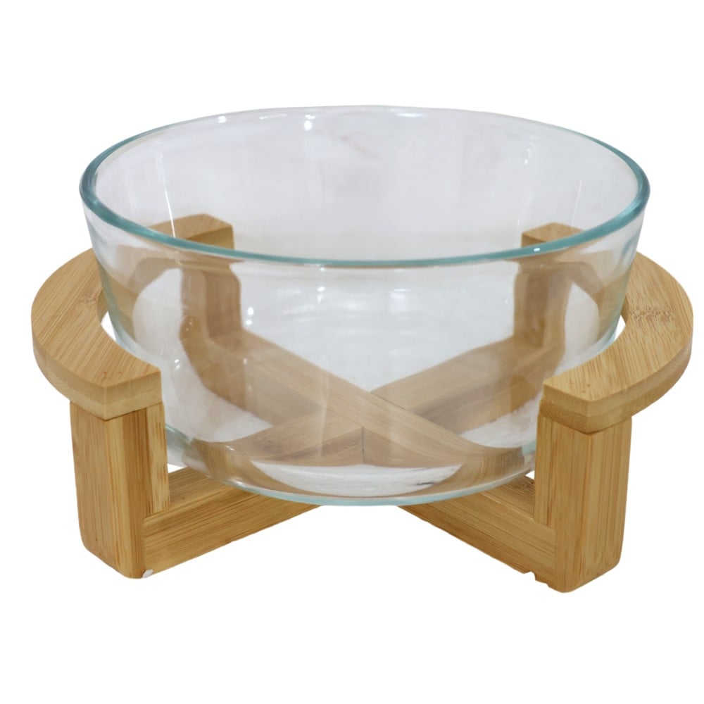 Special stand bowl, made of glass and bamboo, transparent and brown, with a diameter of 18 cm and height 11 cm. This product brings a beautiful combination between modern functionality and design.