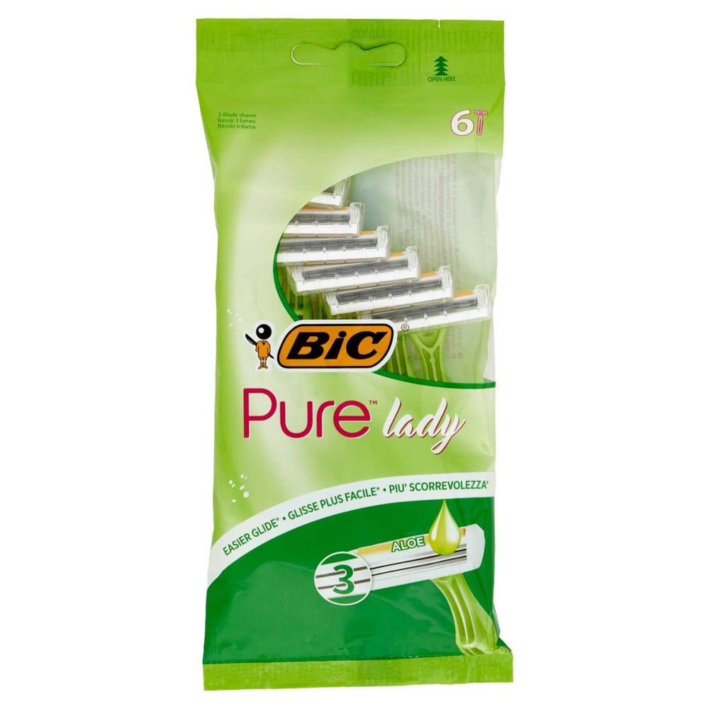 Thanks to the BIC Pure Lady triple disposable razor, an ally always at hand to have smooth legs and soft, velvety arms when you need it most. Designed to guarantee a simpler and smoother shave, it is enriched with an Aloe strip that makes its use easier, faster and above all painless.