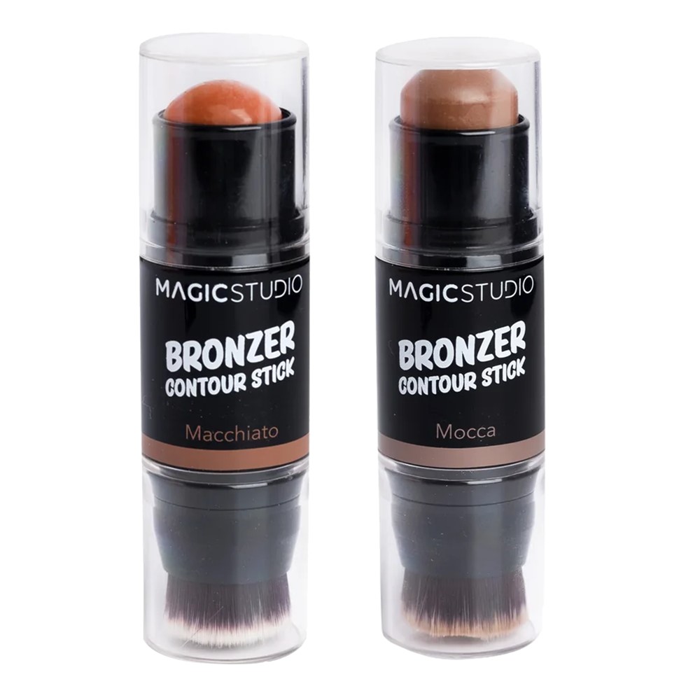 Magic Studio Bronzer & Contour Stick. With a soft and light texture, this product offers easy and natural application, emphasizing facial lines for a perfect look. Ideal for quick and efficient use, this stick is suitable for achieving a perfect contour and bronze.
