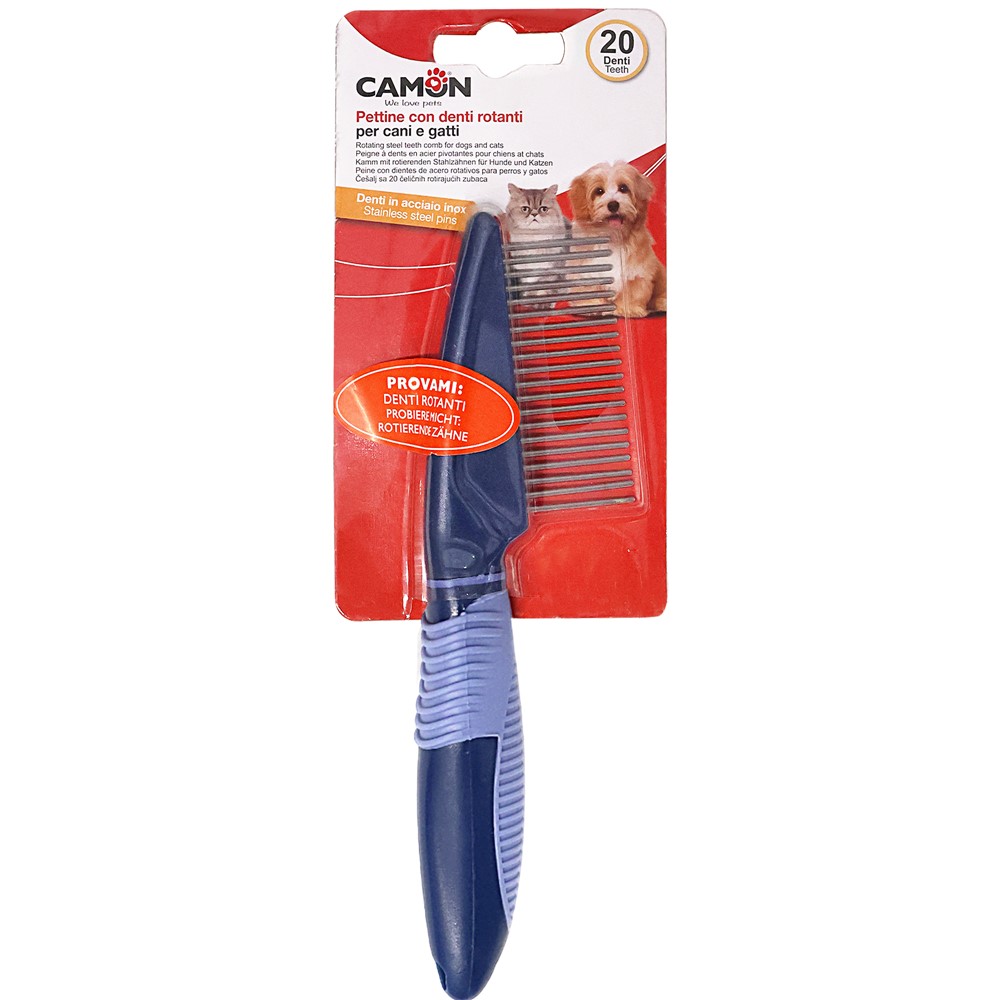 Combs handy and easy to use. The teeth are made of steel and rotate on themselves to increase combing efficiency and not irritate the animal's skin. They feature an ergonomic rubber and plastic handle for safe control of the tool. Comfortable for the dog owner, excellent for the professional groomer. They remove parasites and dirt easily, quickly and effectively.