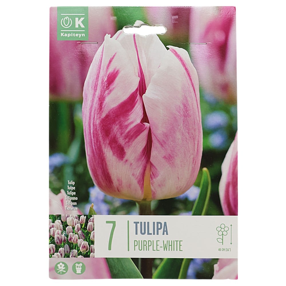 Bulbs, for ground and pot, purple-white tulips, 7 pcs/pack, Purple-White Tulips