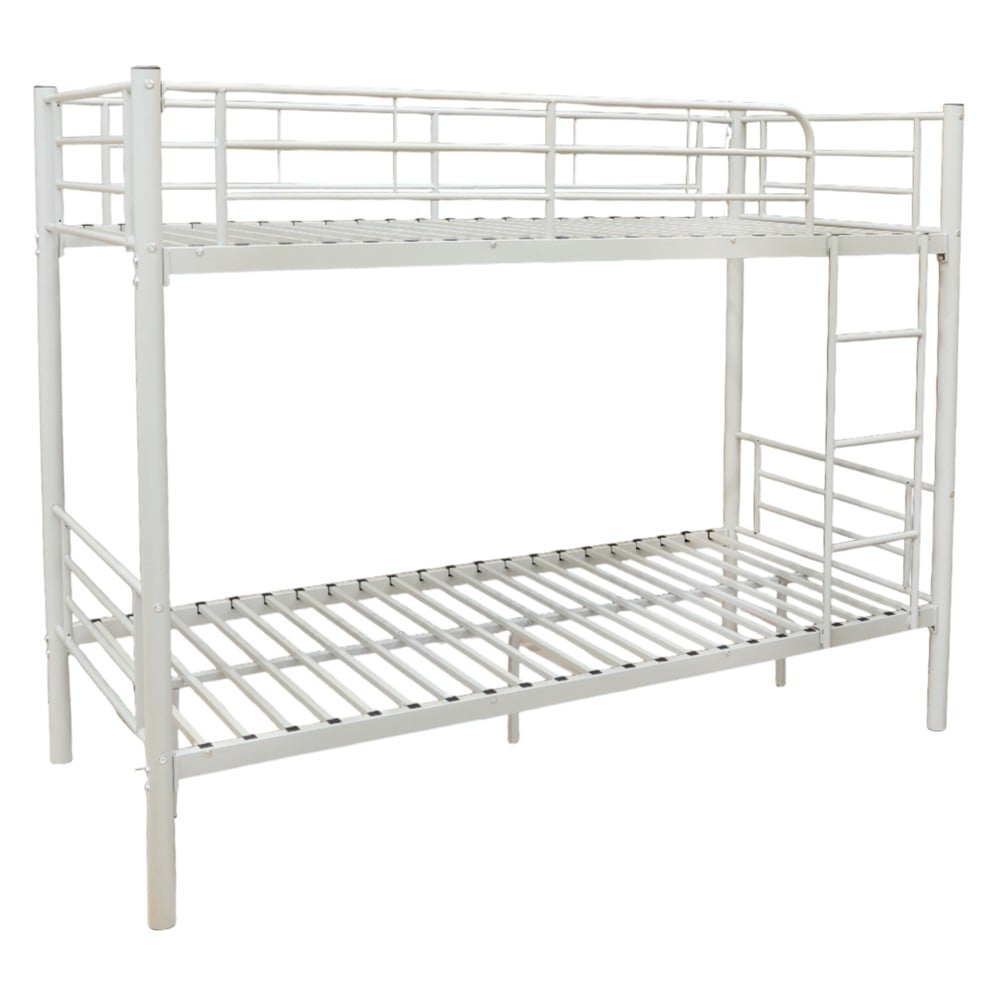This grey metal bunk bed is an ideal solution for rooms with limited space, such as dormitories, hotels or children's rooms. Its compact and modern design maximizes the use of space, providing a safe and functional bed. The durable metal frame provides strong support and durability, while the grey color makes this bed suitable for various interior styles. Also, the integrated stairs make it easy to get on and off the upper bed, providing additional safety. Suitable for mattresses measuring 90x190 cm. Assembly is required, instructions are included in the package.