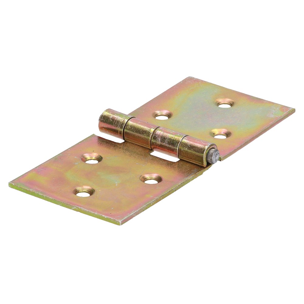 Butt hinge, made of metallic material, with dimensions of 10x4.5x0.15 cm, in golden color. The constituent material is resistant to use, heavy weights, rust or abrasion. It can be used for mounting windows, mounting the doors of countertops or shelves, mounting interior doors or for other uses.