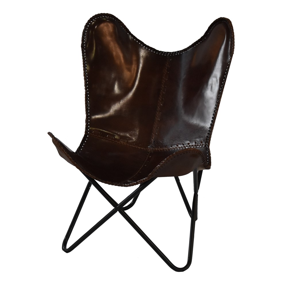 Butterfly chair, metal frame, leather seat, dark brown, 70x75xH90 cm