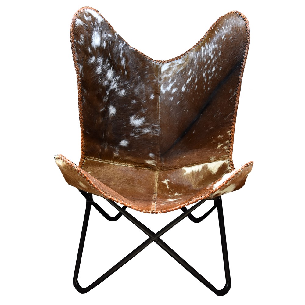 Butterfly chair, metal frame, leather seat, light brown, 70x75xH90 cm
