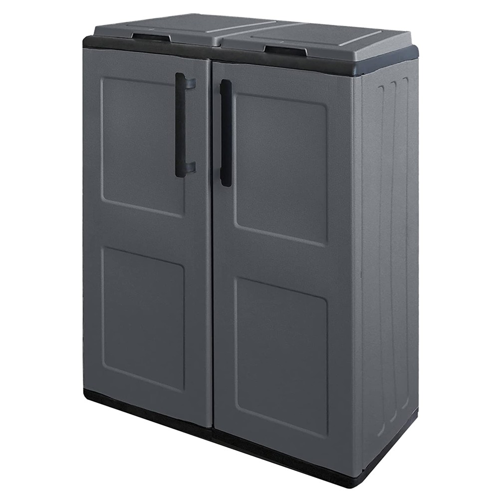 Cabinet with 2 lids, for garbage, polypropylene, anthracite, 68x37xH84 cm