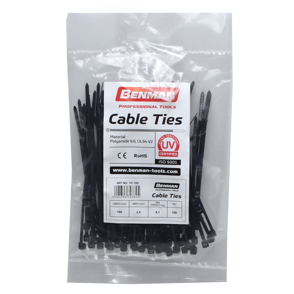 CABLE TIES, BLACK, BENMAN, 100mmX2,5mm (100pcs)