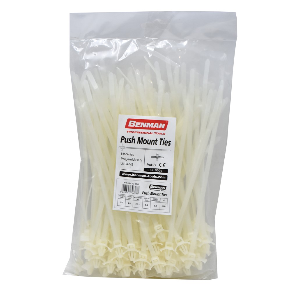 CABLE TIES FOR HOLES, WHITE, BENMAN, 200x4.8mm (100pcs)