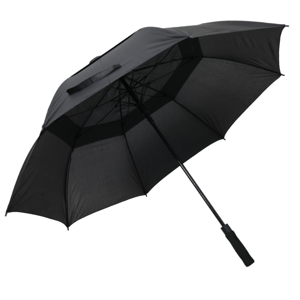 This umbrella is built with a reinforced metal material and is wind resistant. It has a polyester fabric which is waterproof. Just shake the frame and it is completely dry.