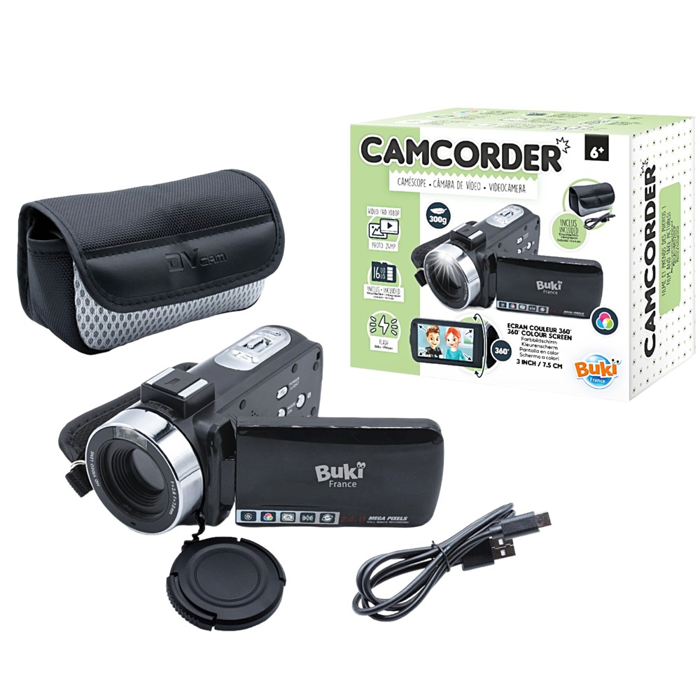 With this Buki brand digital camera, your child will be able to capture his best memories in video or photos. A compact camcorder, light (300g) and easy to use thanks to its adjustable handle. The 7.5 cm diagonal HD color screen is rotatable, which allows you to turn the screen but also switch to selfie mode. The camcorder has an X16 zoom. Your child can connect the camcorder to a computer to use it as a webcam. A flash is included to improve the quality of videos in the dark. A 16GB SD card is provided to record up to 45 minutes in 1080p. Photo quality can go up to 24 megapixels. The camera menu allows you to choose different resolutions. Included: a 16GB SD card, a case, a strap and a USB-C charging and transfer cable.