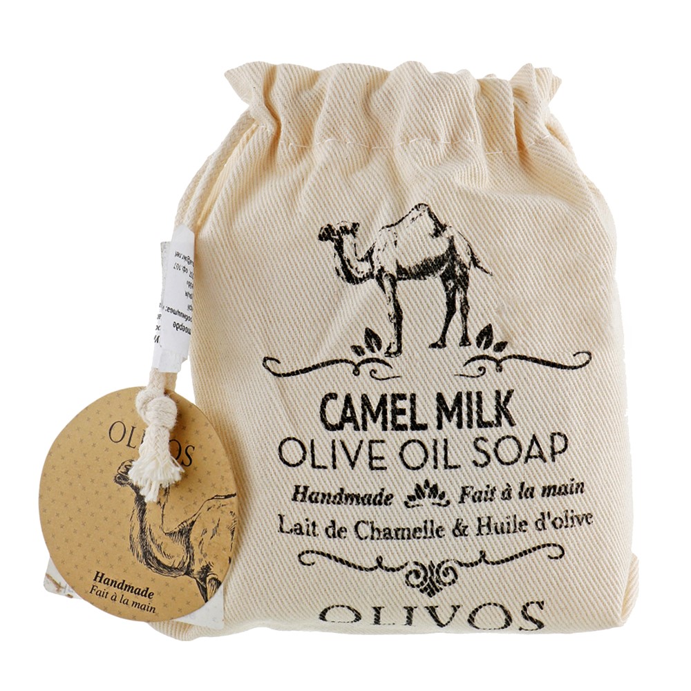 Soap in canvas bag, which contains extra virgin olive oil and camel milk, with nutritional value for the skin. It regenerates and moisturizes the skin, prevents the formation of wrinkles, it is rich in alpha-hydroxide acids, vitamins A, B1, B2, B12, D and carotene, which protects the skin from sun damage and skin problems. It can be used on body, face and hair.
