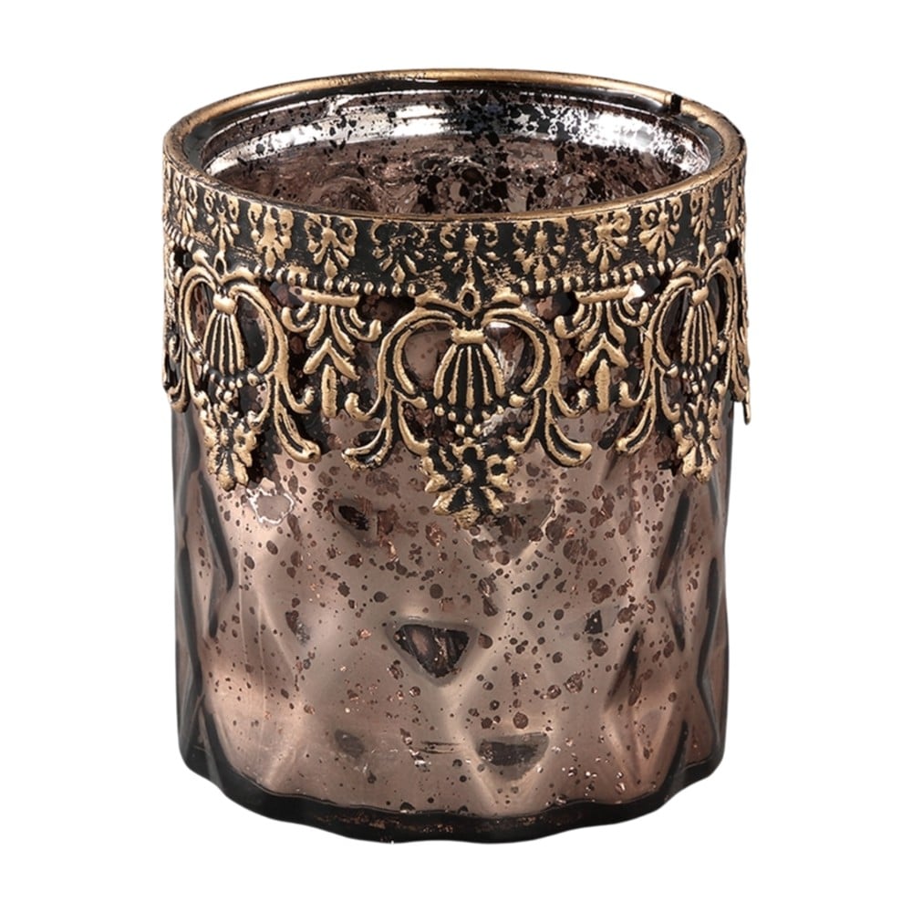 Candle holder, glass, bronze, 9x9xH10 cm