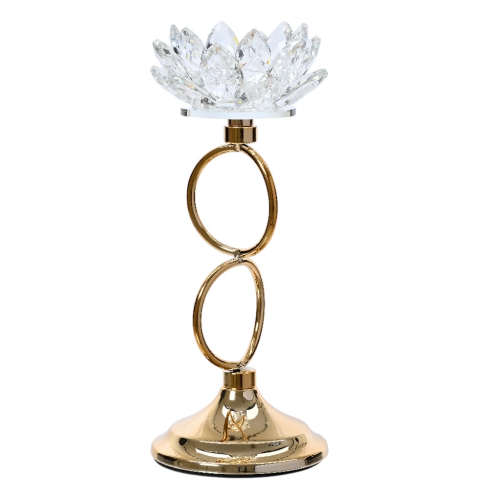 Add a touch of luxury to your interior with this glass candle holder. Its elegant design instantly catches the eye and brings an air of sophistication to any room.