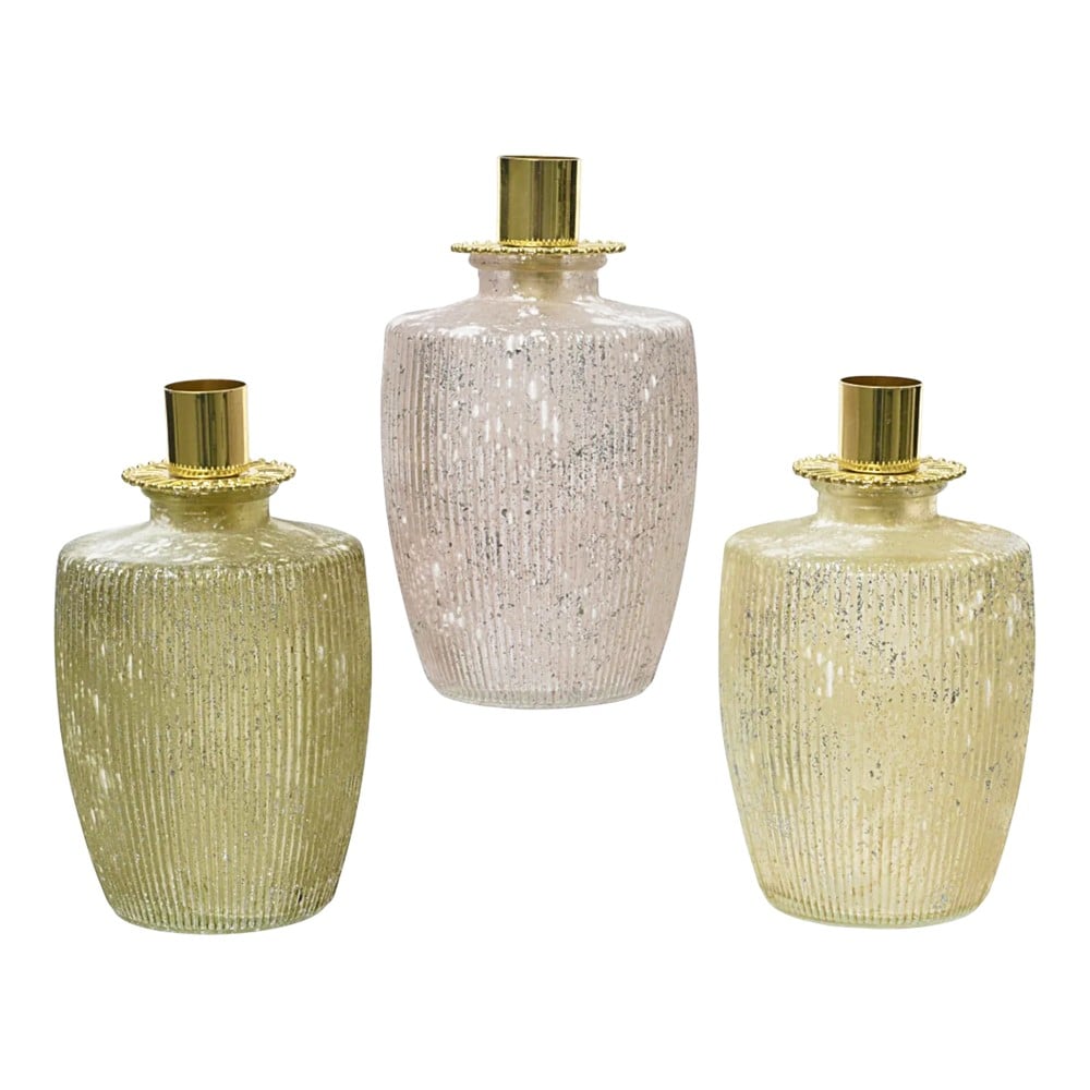 Candle holder, glass/metal, assorted, Ø9xH15 cm