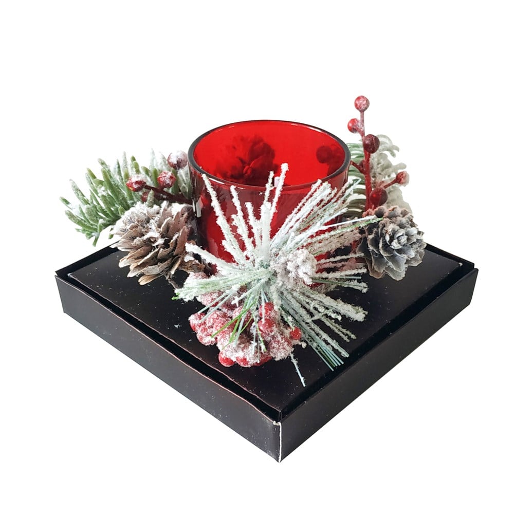 Candle holder, glass, red, 11.3x11.3xH7.5 cm