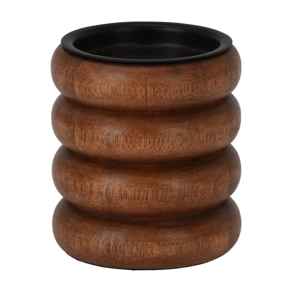 Candle holder, mango wood, brown, Ø10xH11.2 cm