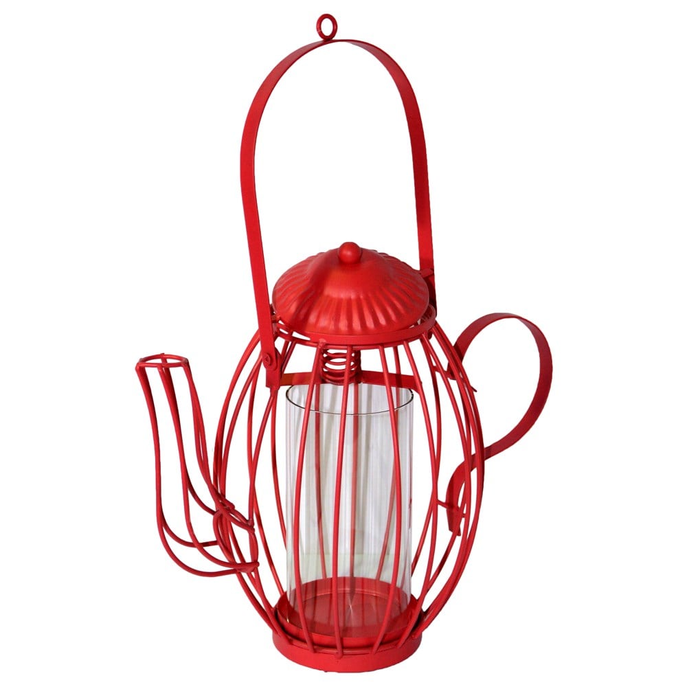 Candle holder, metallic and glass, red, Ø21xH37 cm